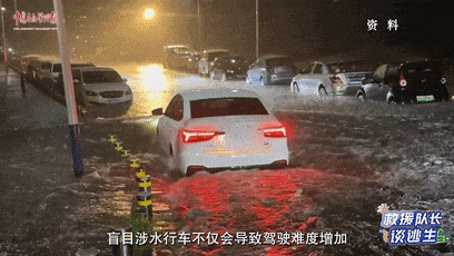 进入汛期 降雨天气增多 行车风险隐患加大 近年来 漫水路涉险事件时有发生 一些车主在冒险通过积水路段时 因积水较深 车辆熄火、抛锚导致司乘人员 被困车内无法脱身 甚至出现伤亡 在行车时 经过积水路面时 我们该如何应对? 盲目涉水行车不仅会导致驾驶难度增加,也会伴随很大的危险性。 水位超过轮胎二分之一就不要通过了,如遇到坑洼、井盖就有可能导致发动机熄火。此时切忌重新打火,以免损伤发动机。 万一车辆在积水中熄火 我们应该怎么办呢? 当车辆已经在水中熄火,且水位已经淹过半个车轮,到达车辆下坎,而水位仍有上涨趋势时,驾驶员应该果断弃车逃生,这是逃生的最佳时机。 如果水流过大,已经淹过车门,且车辆有漂浮感,发生头重脚轻、左右摇摆的情况,要在断电之前打开车窗弃车逃生,不要贪恋财物,迅速离开。 常用的破窗工具有安全锤,使用时用力敲击车窗四周,还有弹簧按压破窗器,用力一按可快速破窗,一定要放在触手可及的地方,千万不要放在后备箱。 此外,如果车辆掉入水中,解除安全锁迅速开门或开窗逃离。选择是破窗或从天窗爬出。如果实在无法破窗,等水快充满车内,车内外的压力基本均衡后,可以打开车门。 道路千万条,安全第一条 记住车辆落水也有逃生通道! 人人讲安全、个个会应急——畅通生命通道 为生命留出希望之路!