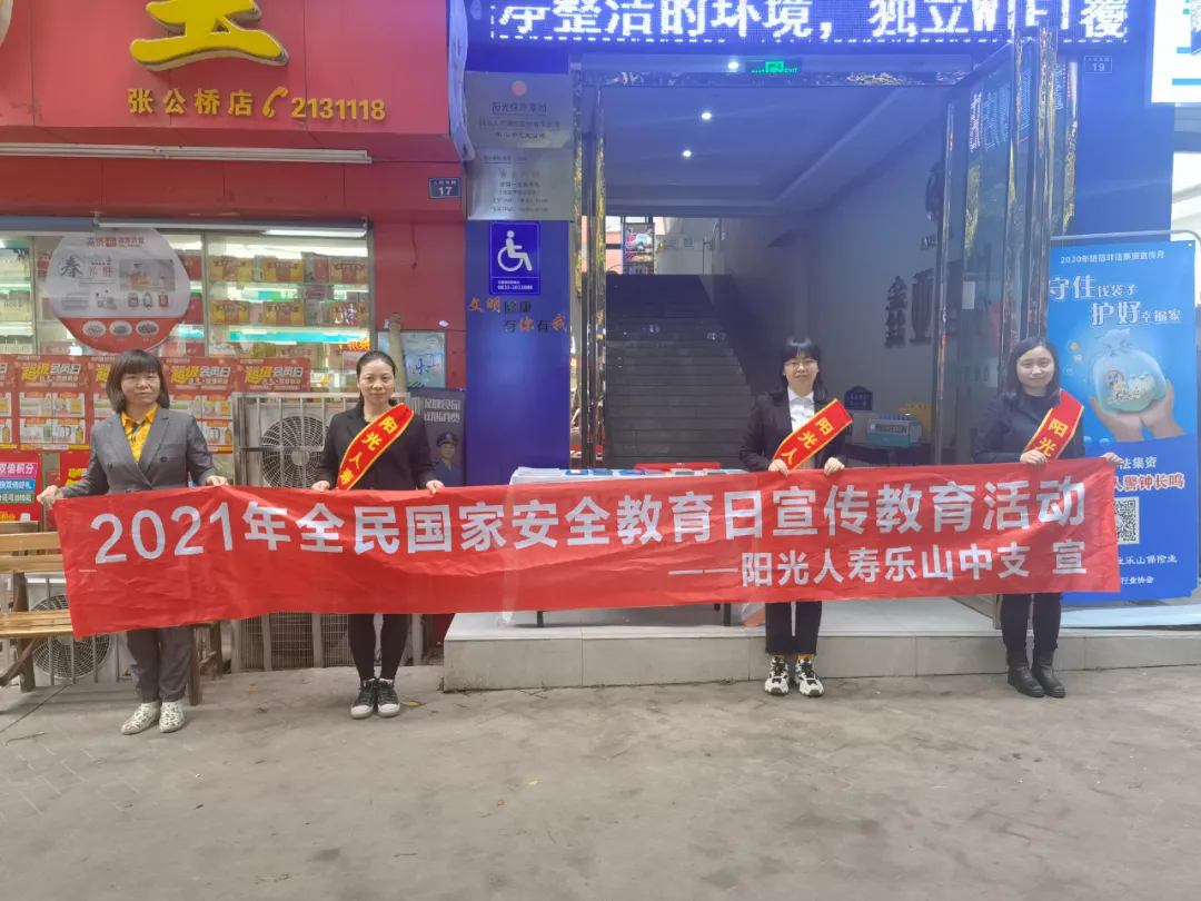 为践行总体国家安全观,推动国家安全宣传教育深入开展,进一步增强全民国家安全意识和金融安全意识,阳光人寿乐山中支于4月15日开展全民国家安全教育日普法宣传活动。