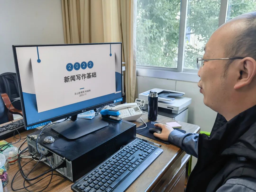 培训会上,宋瑞琦结合自己从事新闻工作多年的实践经验和切身体会,通过理论和实例分析相结合的方式,从“为什么要写新闻”、“新闻稿件怎么写”、“会场照片怎么拍”三个方面入手,围绕新闻写作的目的、新闻稿件基础结构、领导活动稿件注意事项以及新闻图片拍摄技巧和处理等内容进行了详细、系统的讲解和培训。